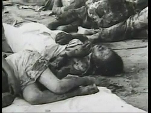 コレガ人間ナノデス 原子爆弾ニ依ル変化ヲゴラン下サイ 肉体ガ恐ロシク膨脹シ 男モ女モスベテ一ツノ型ニカヘル オオ ソノ真黒焦ゲノ滅茶苦茶ノ 爛レタ顔ノムクンダ唇カラ洩レテ来ル声ハ 「助ケテ下サイ」 ト カ細イ 静カナ言葉 コレガ コレガ人間ナノデス 人…